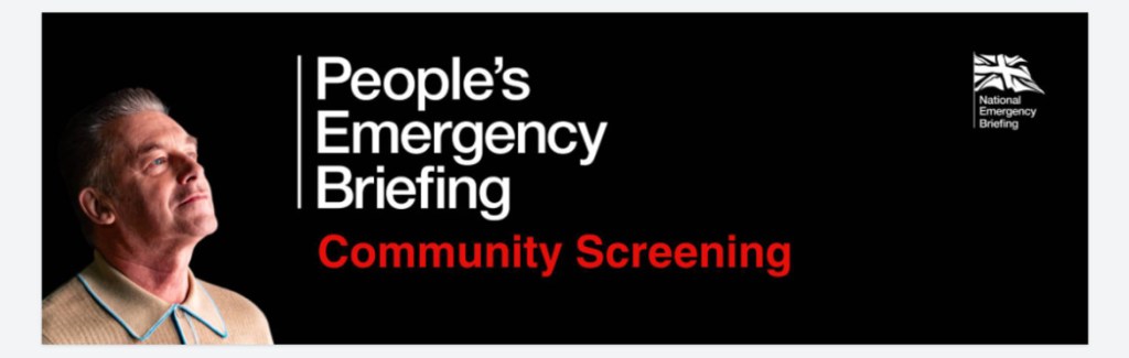 - Wed 3 June. Wanstead Library 7-9pm. Community film showing of new People’s Emergency Briefing feature. Free but registration required.